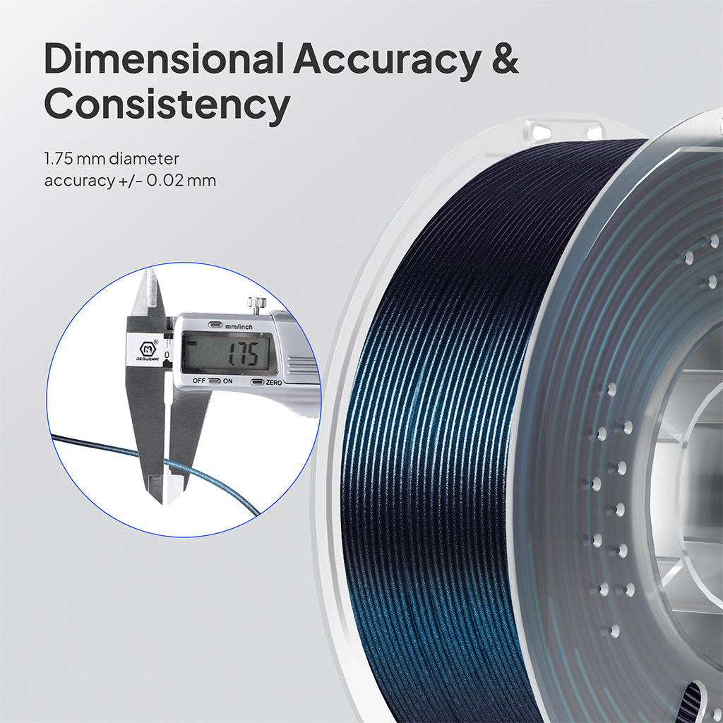 The strict tolerance of 1.75mm diameter (dimensional accuracy + / -0.02 mm) ensures smooth feeding, greatly reduces the occurrence of nozzle clogging and improves the printing success rate. Minimal warping and little to no odor during the printing process give you a hassle-free 3D printing experience.