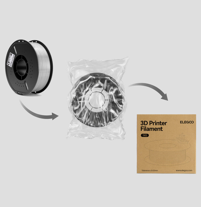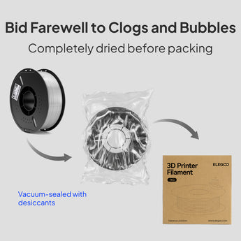 All our filament is completely dried before packing and vacuum-sealed with desiccants to protect from moisture and dust, preventing clogs and bubbles during printing.