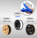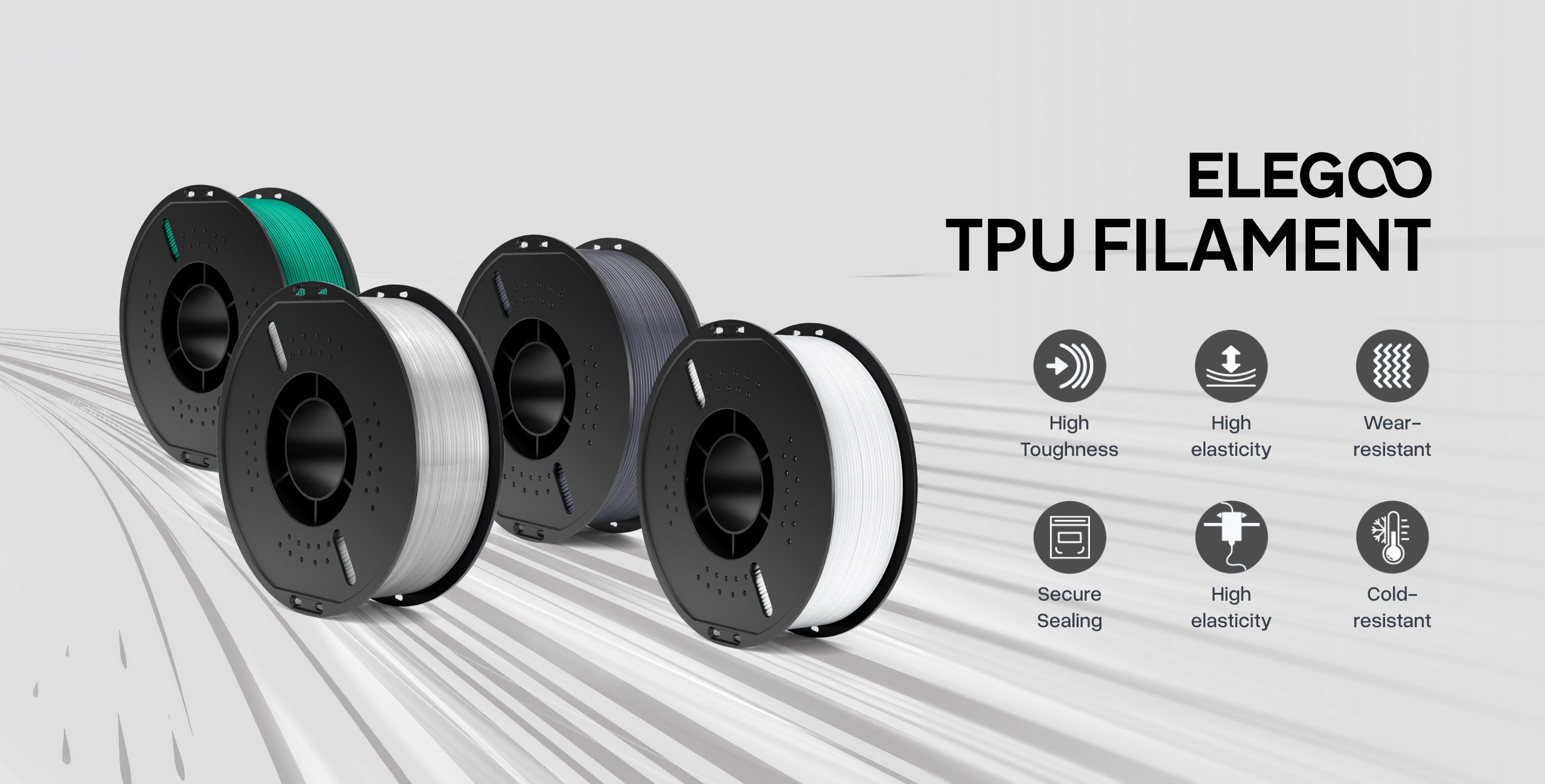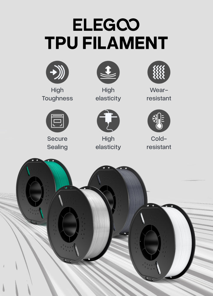 Elegoo TPU 95A stands out for its versatility, finding applications across various industries, including automotive, robotics, footwear, wearable devices, fashion accessories, and more. Whether you need to create flexible parts, custom phone cases, shoe soles, shock-absorbing parts, seals, gaskets, or prosthetics, the possibilities are endless.